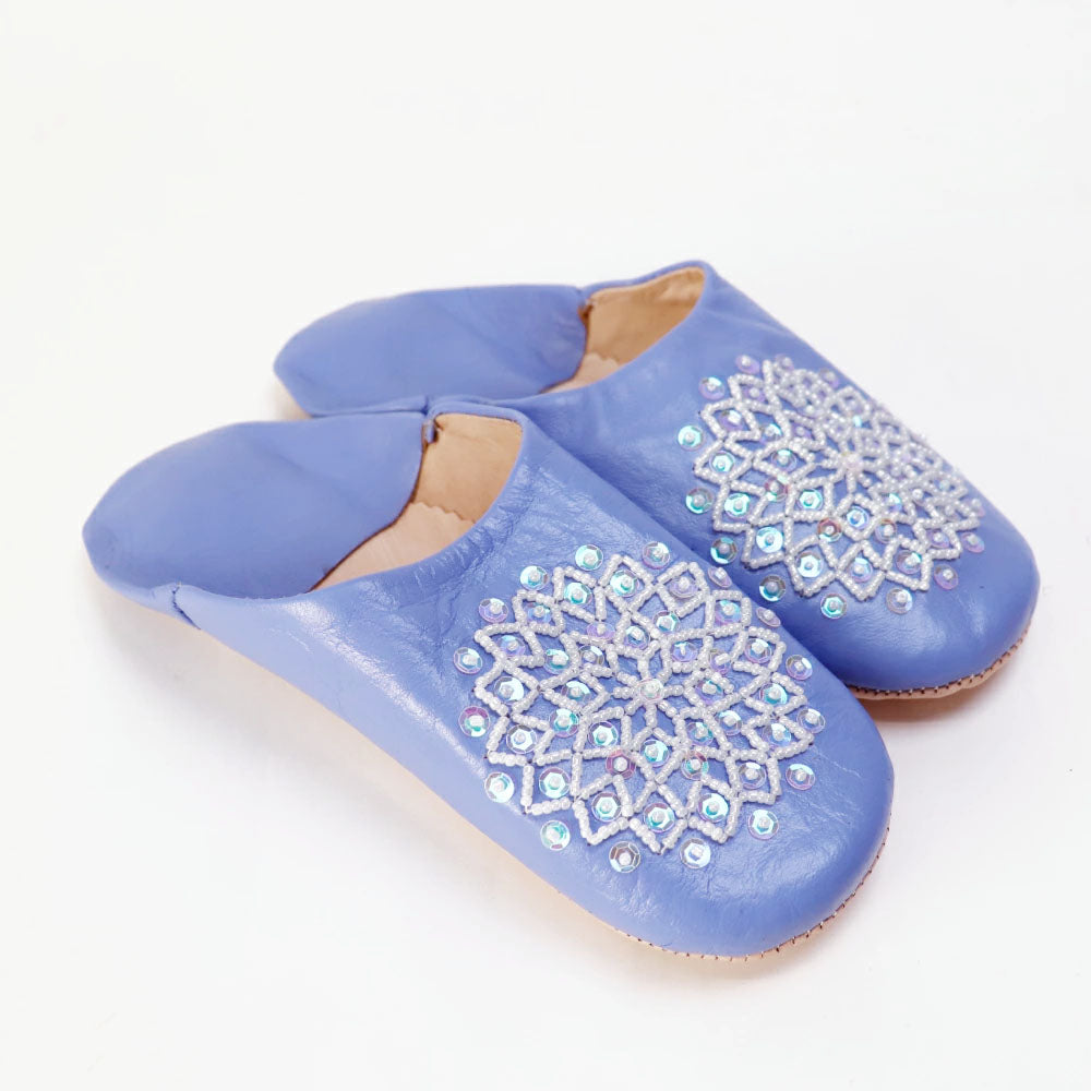 なめされた羊革は染色や様々な装飾を施され、バブーシュ職人の手によって美しいバブーシュに仕上がります。