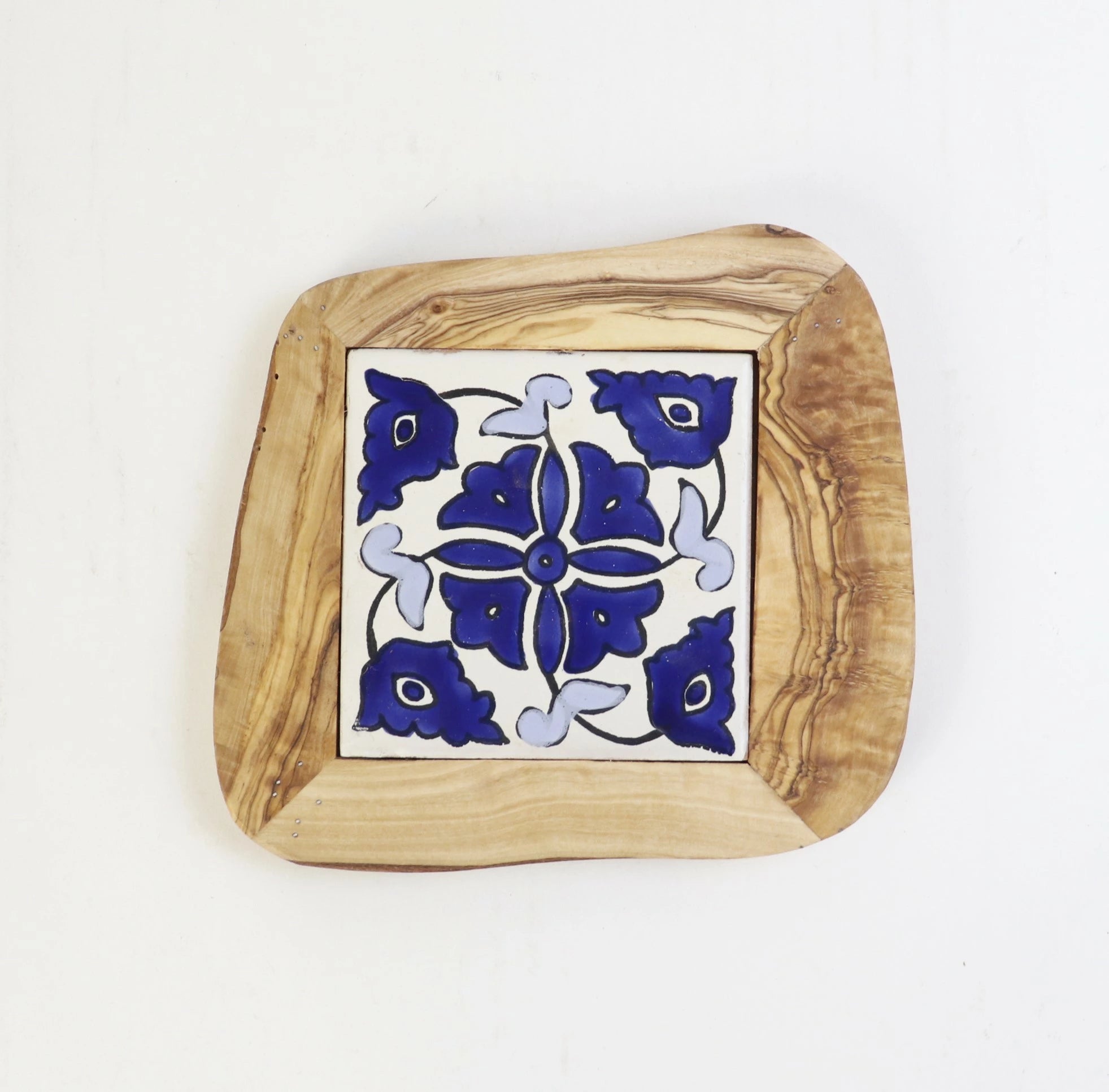 オリーブ木 タイル鍋敷き 10x10