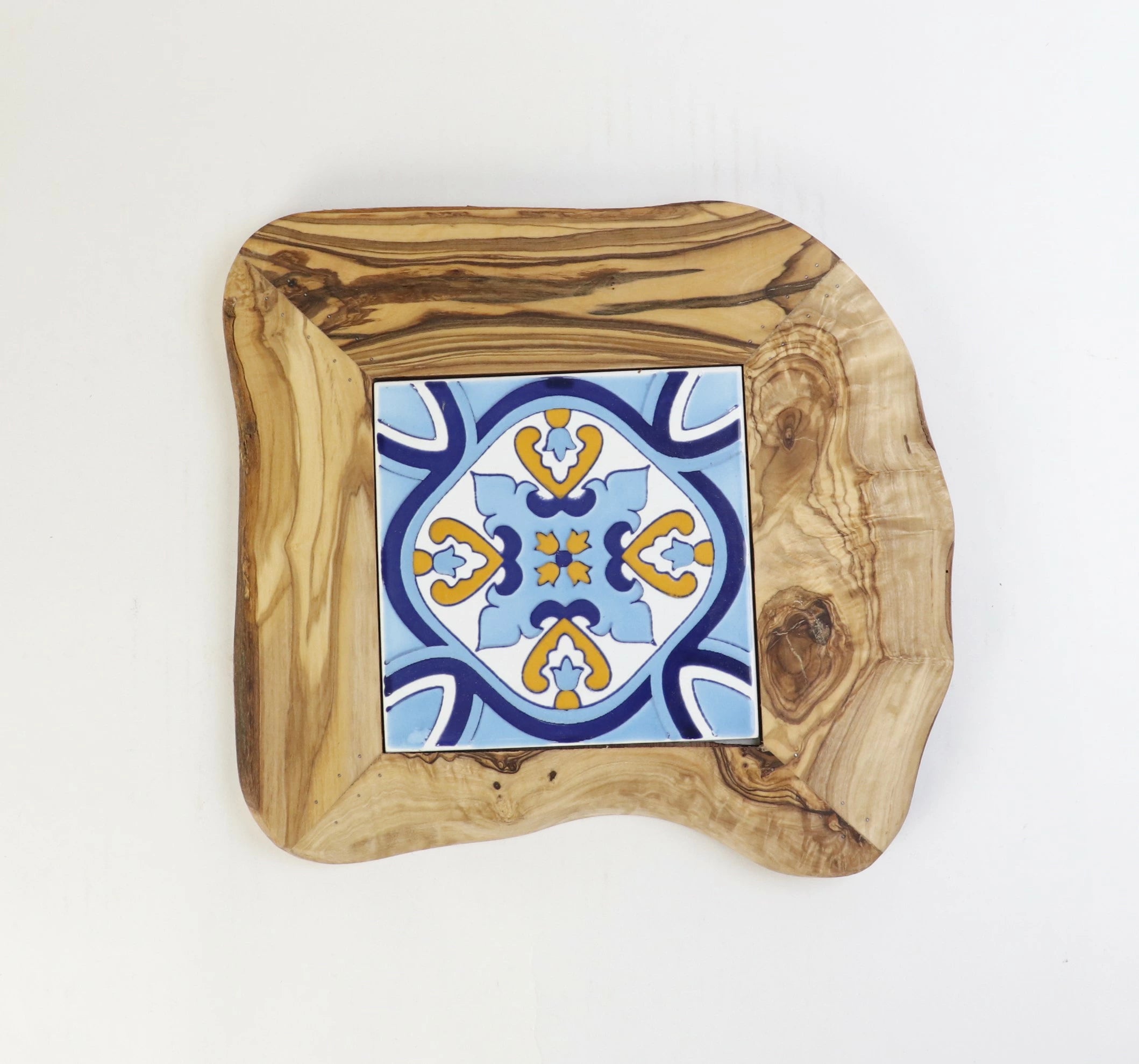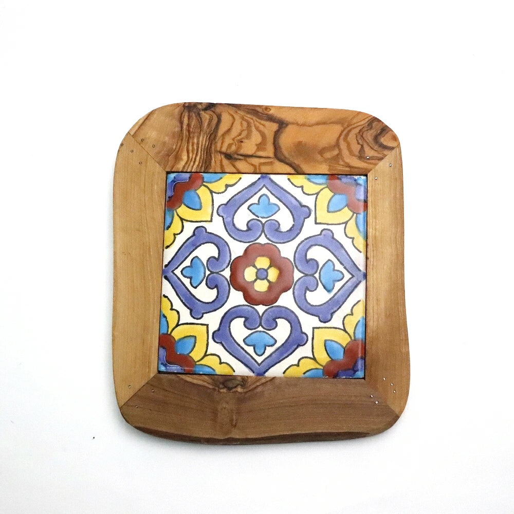 オリーブ木 タイル鍋敷き 15x15 08