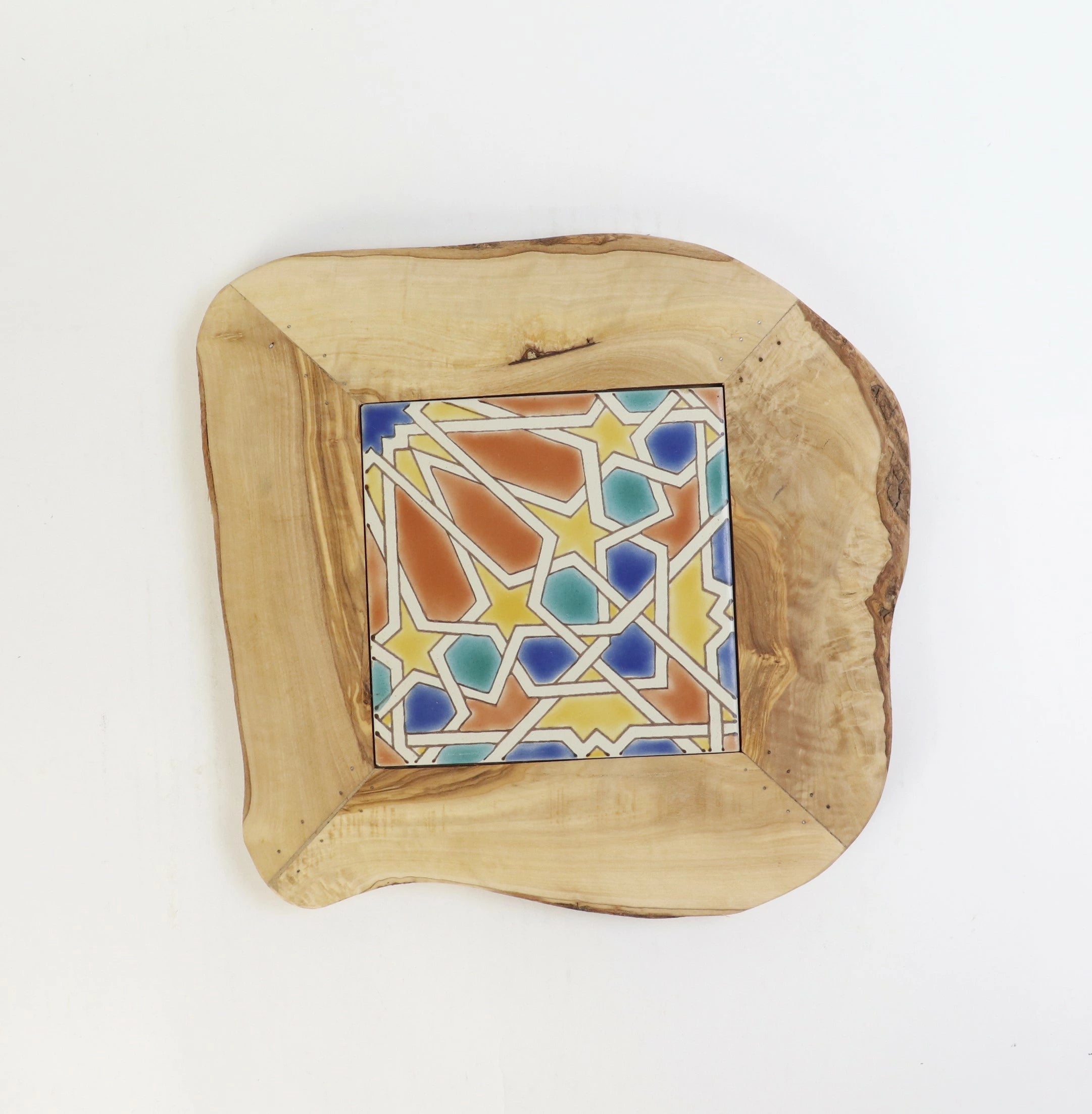 オリーブ木 タイル鍋敷き 10x10 09