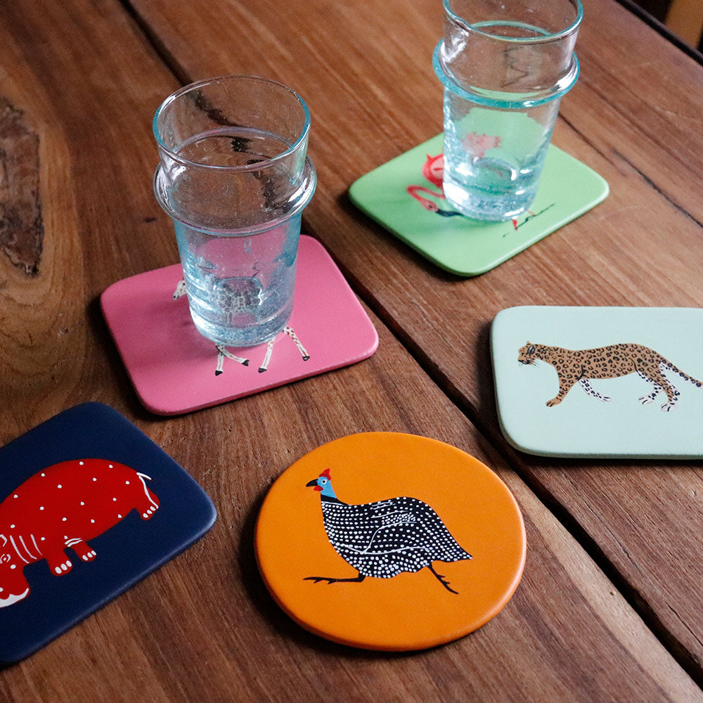 ココナッツウッド ラウンドコースター 牛骨装飾アイ ストライプ