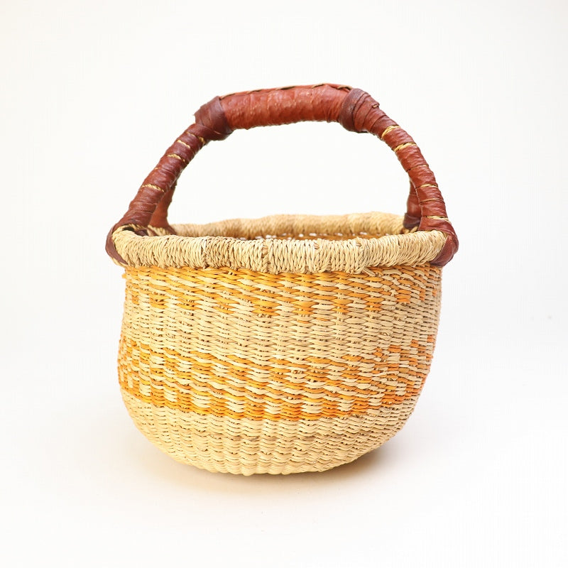 ニャリガバスケット 丸底 黒平革ぐるりハンドル 小 ナチュラル